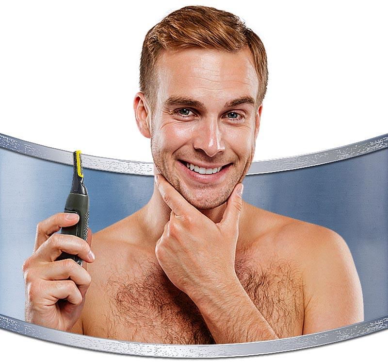 Desde de raspar sua barba até aparar suas sobrancelhas. Os dois pentes extras nivelam a altura do corte, que pode ser rente à pele ou mais superficial.
