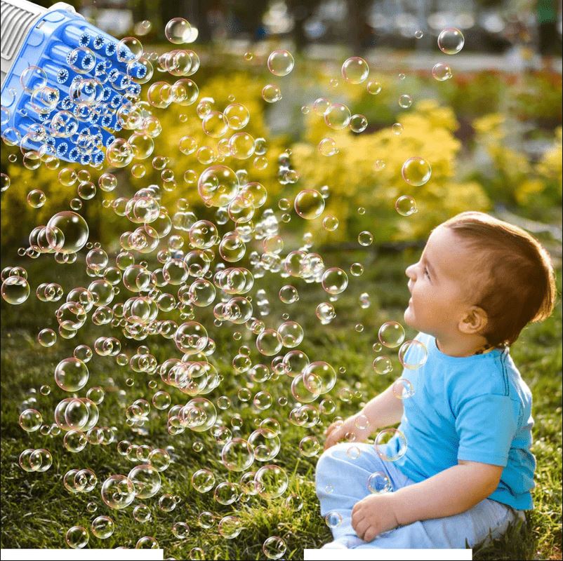 O pequeno lembrará para sempre dos momentos que teve ao seu lado com o lançador de bolhas de sabão.
