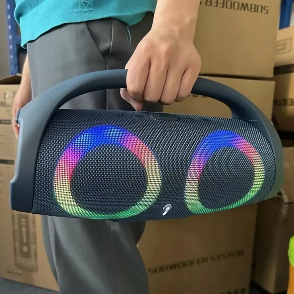 Portabilidade: Apesar de seu tamanho, a Boombox 2 possui uma alça de transporte integrada, facilitando o transporte para onde você quiser.