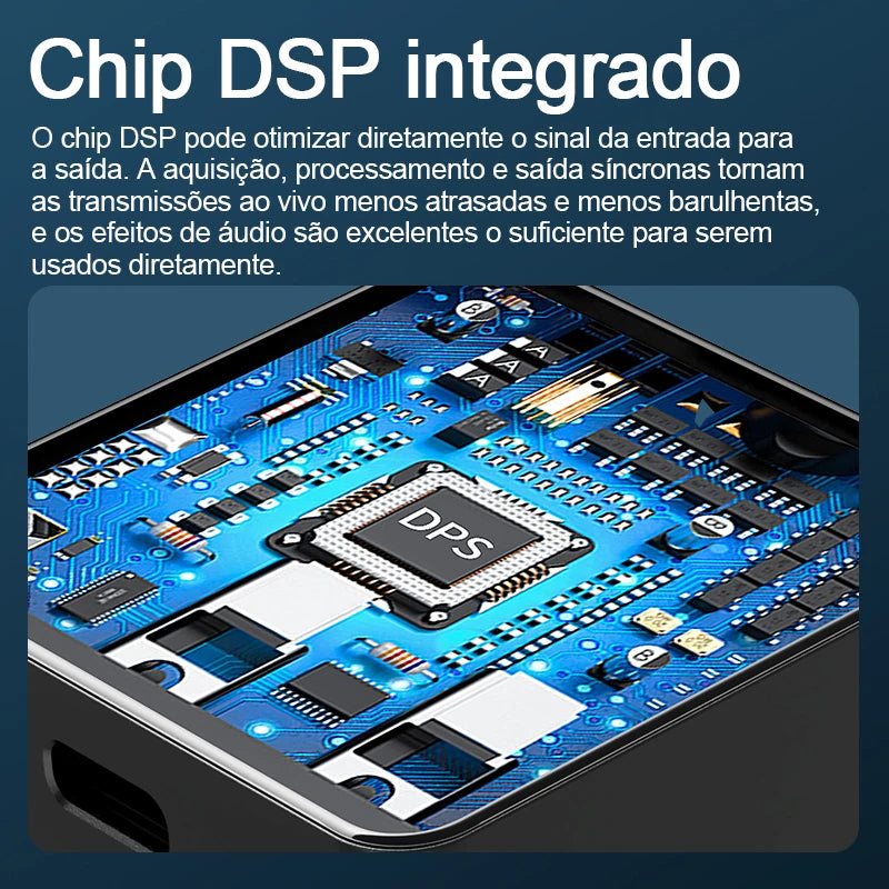 �� O chip dsp pode otimizar diretamente o sinal da entrada à saída. A aquisição síncrona, o processamento, e a saída fazem as transmissões ao vivo menos atrasadas e menos ruidosas, e os efeitos de áudio são excelentes o suficiente para ser usado diretamente.